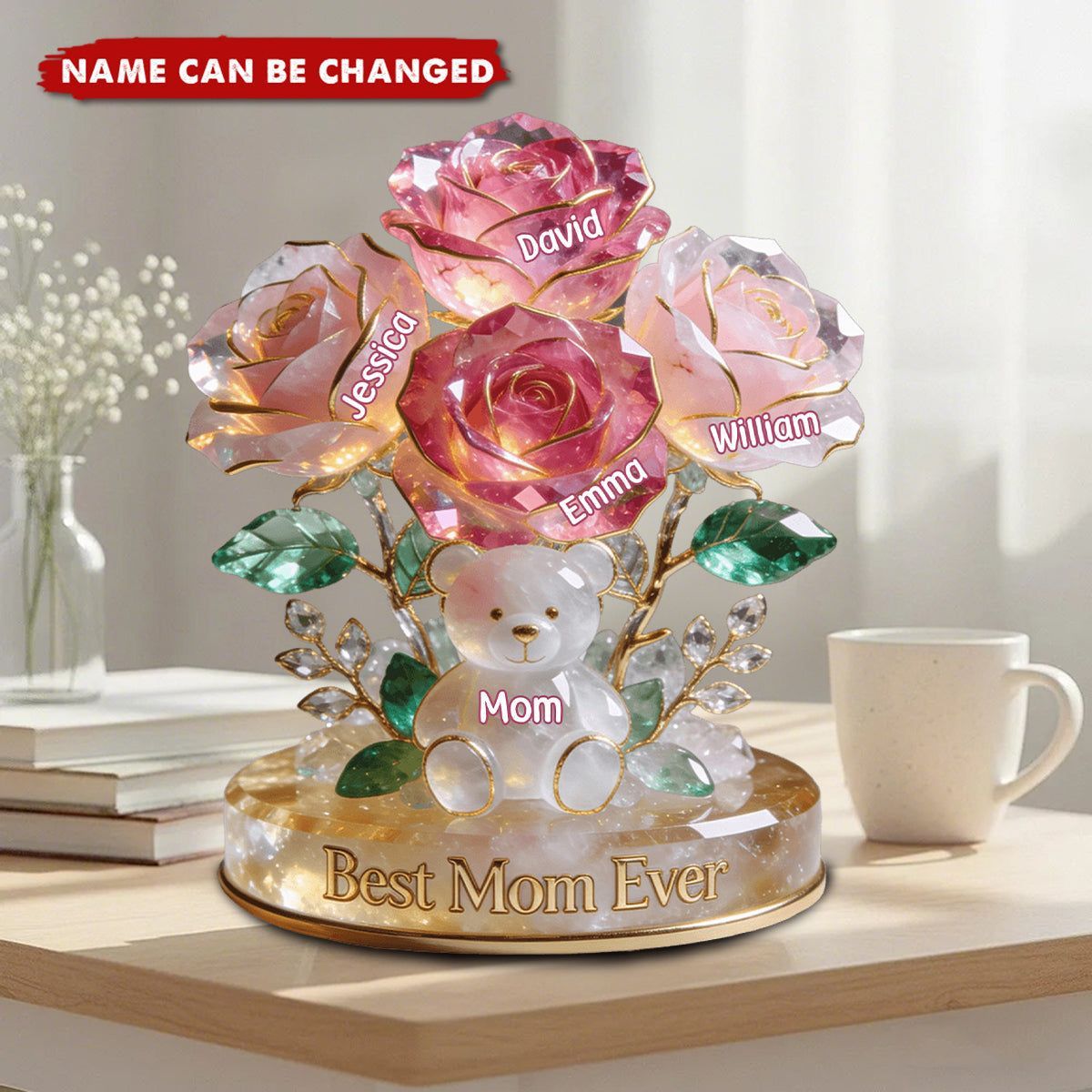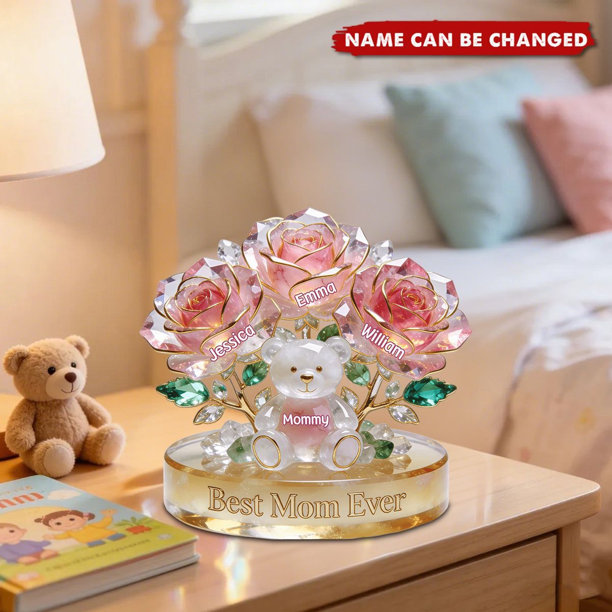 Blumenbär-Mama-Acrylplakette – Personalisierte Geschenke für Mutter