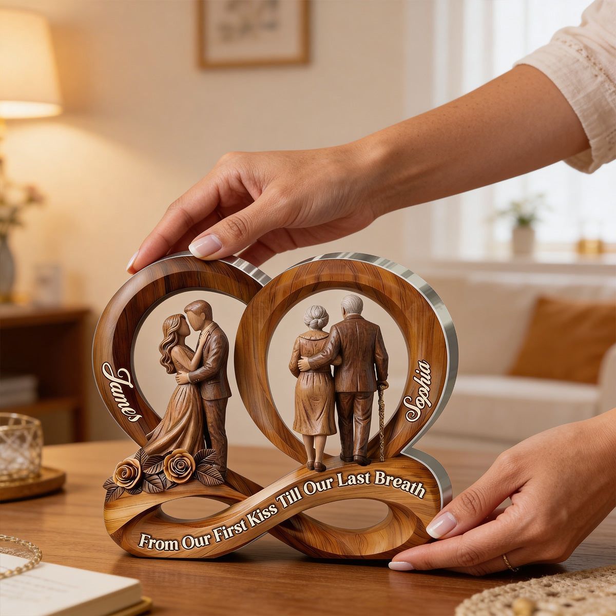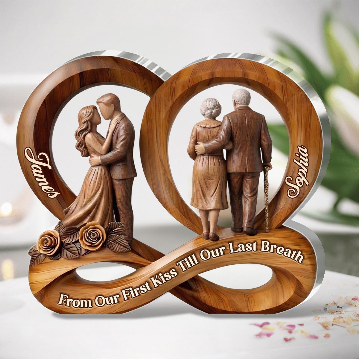 Personal isiert von unserem ersten Kuss bis zu unserem letzten Atemzug Acryl-Plakette | Custom Name Infinity Couple Keep sake