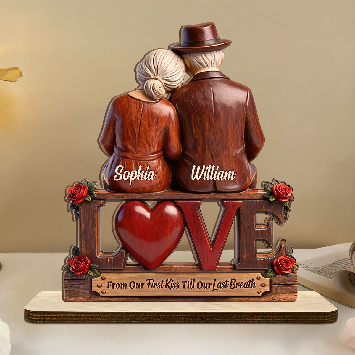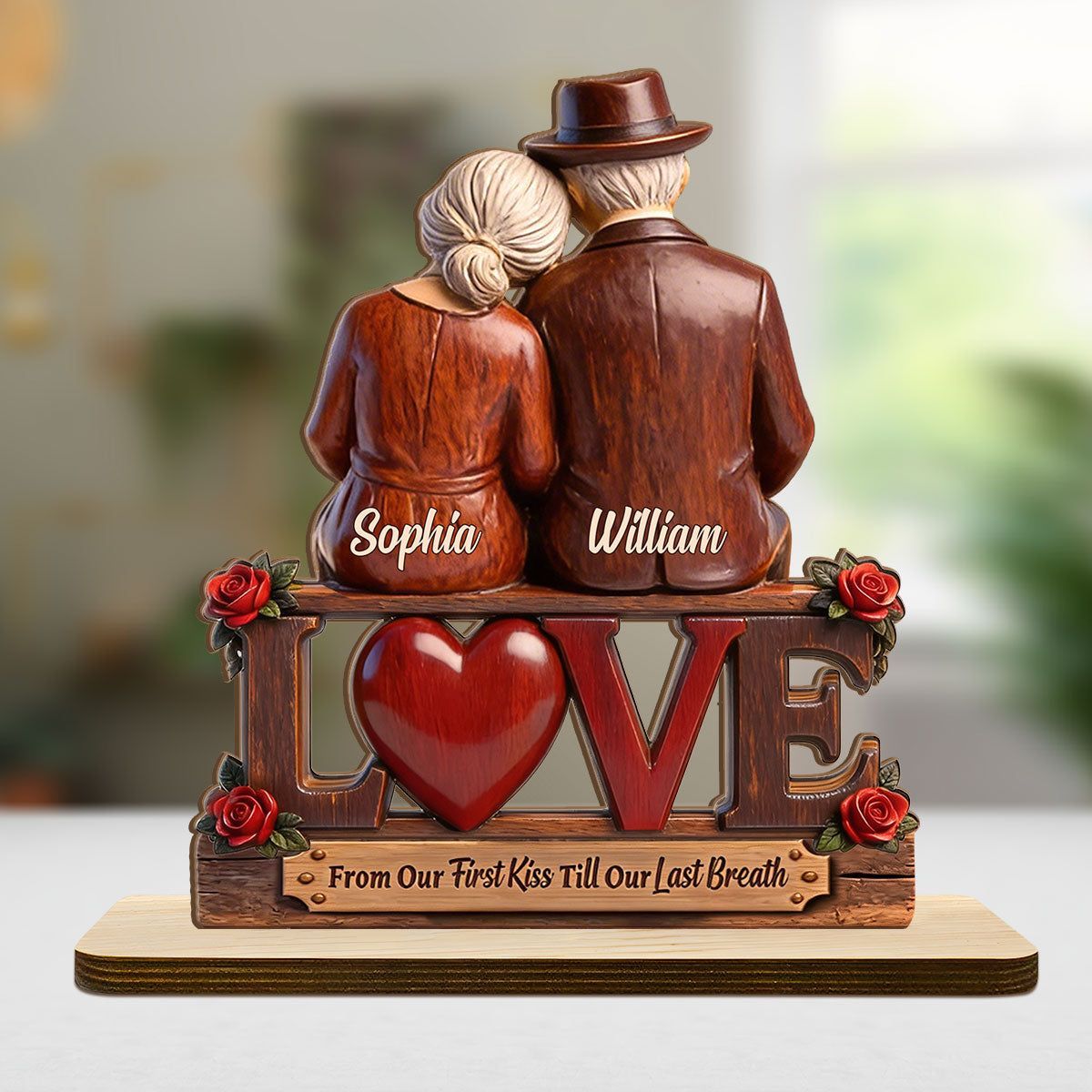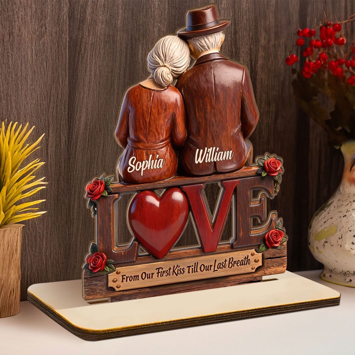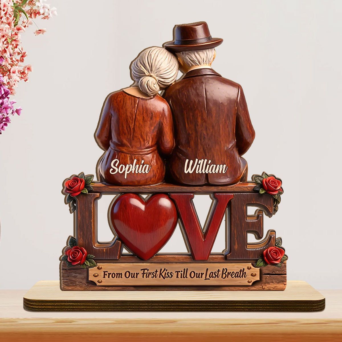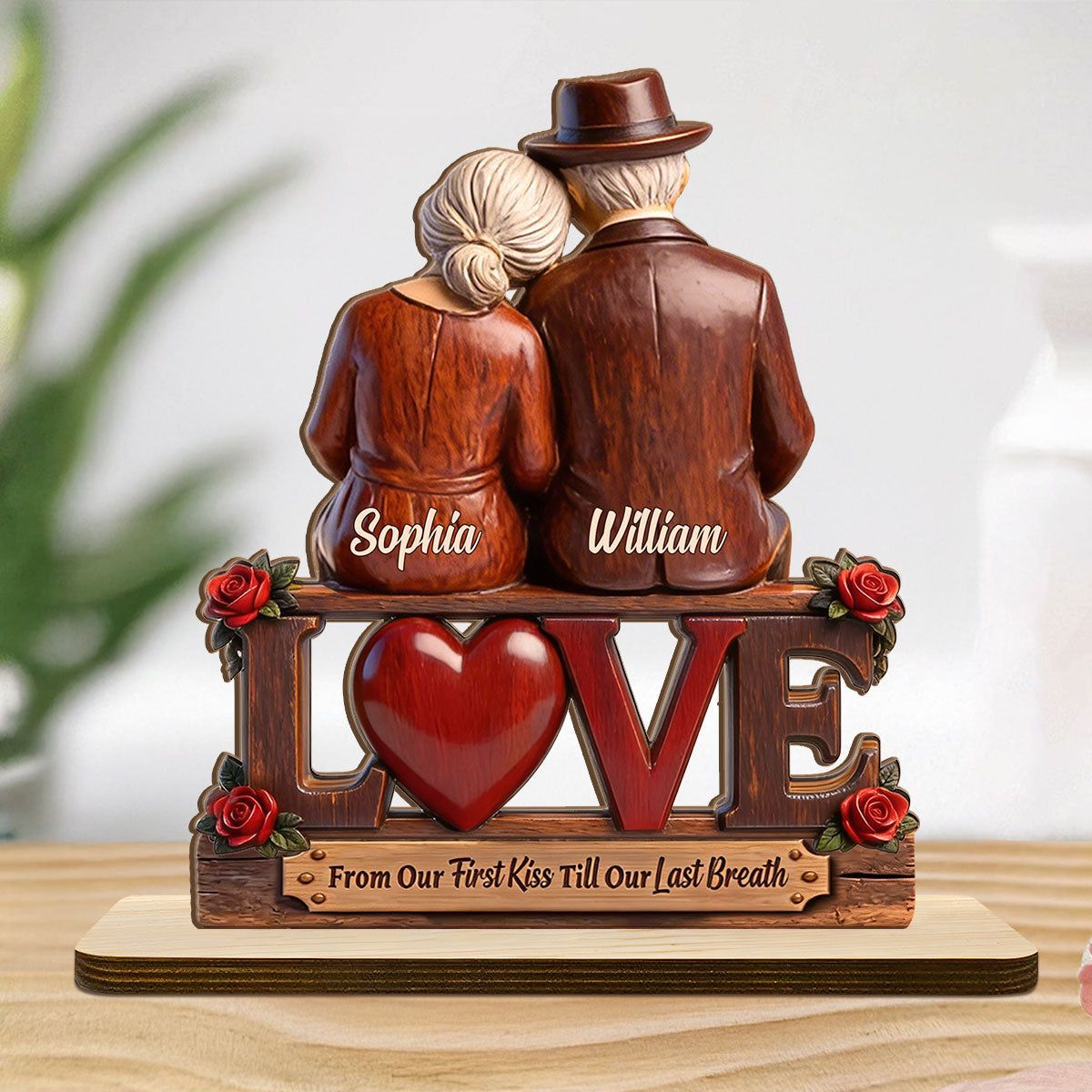 Personal isiert vom ersten Kuss bis zum letzten Atemzug Holz plakette | Custom Name Älteres Paar Liebe Andenken