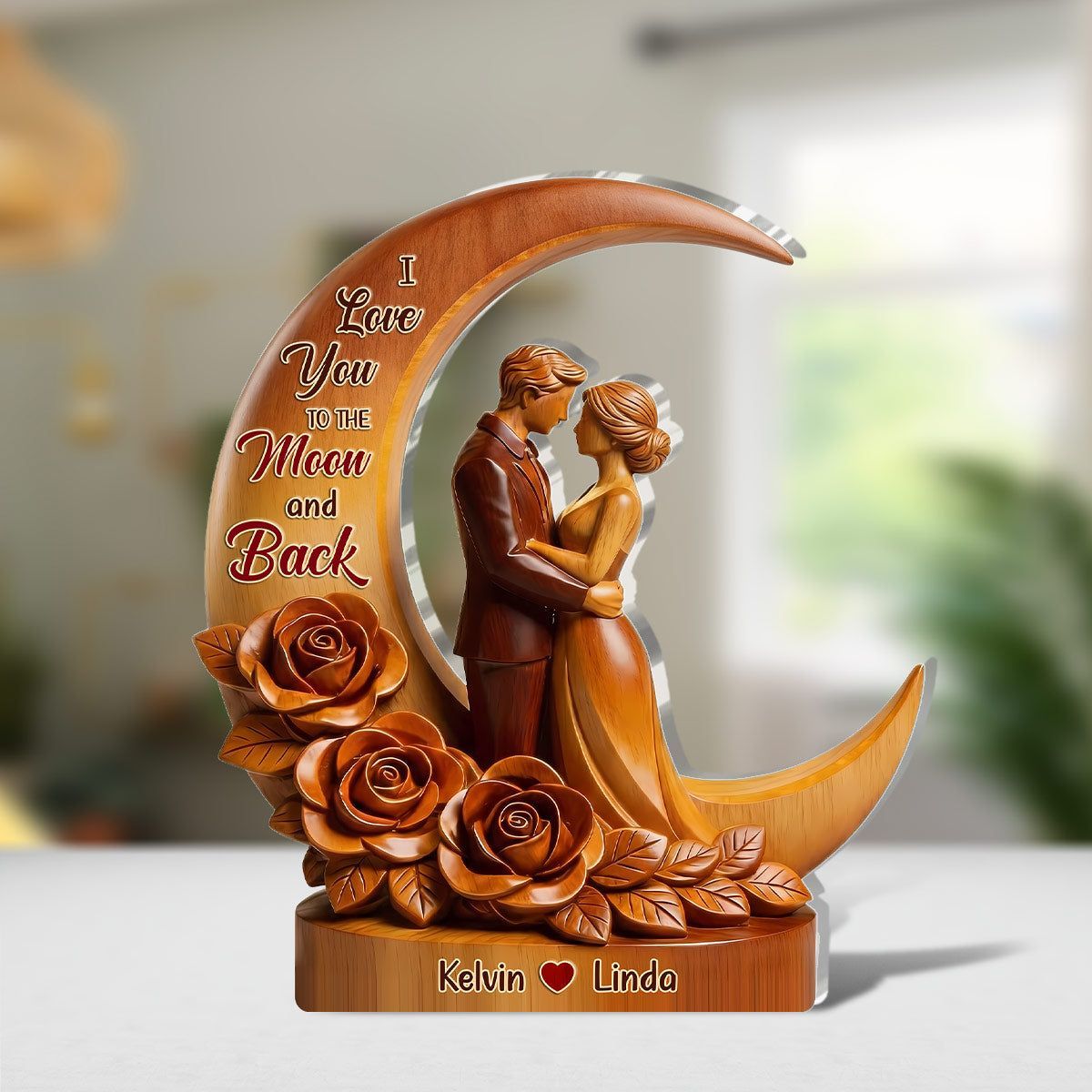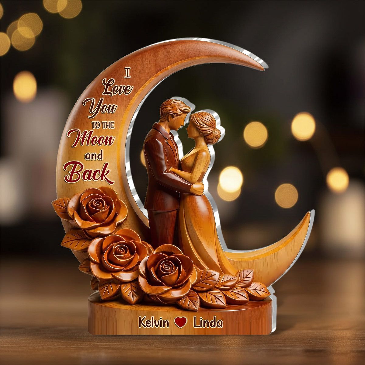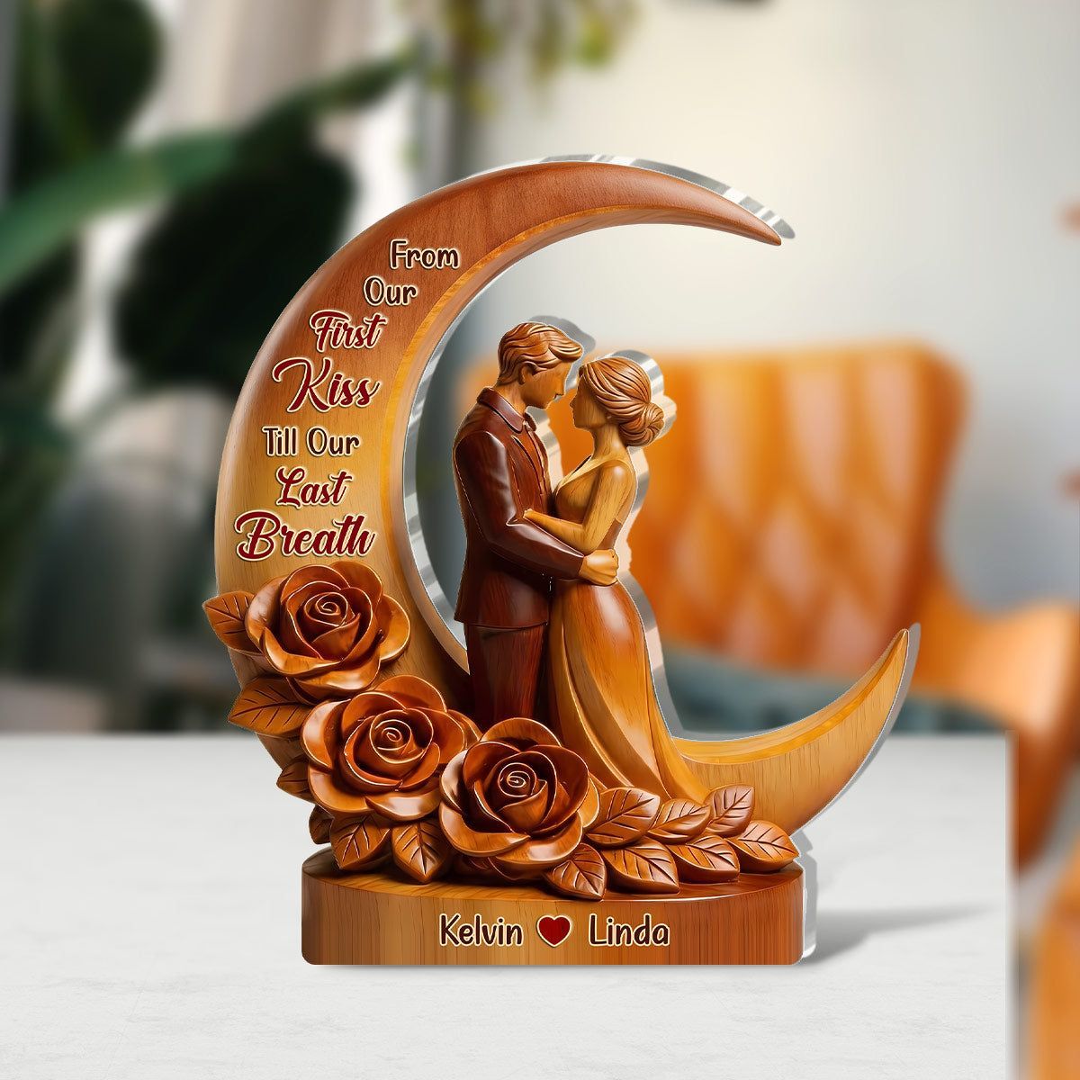 Personal isiert von unserem ersten Kuss bis zu unserem letzten Atemzug Acryl-Plakette | Custom Name Junges Paar Mond Rose Andenken