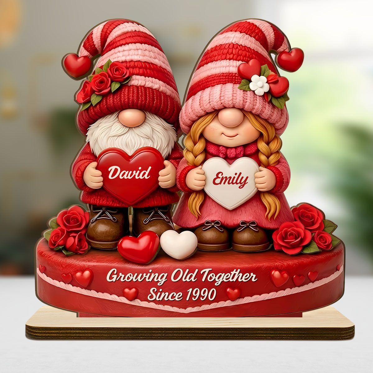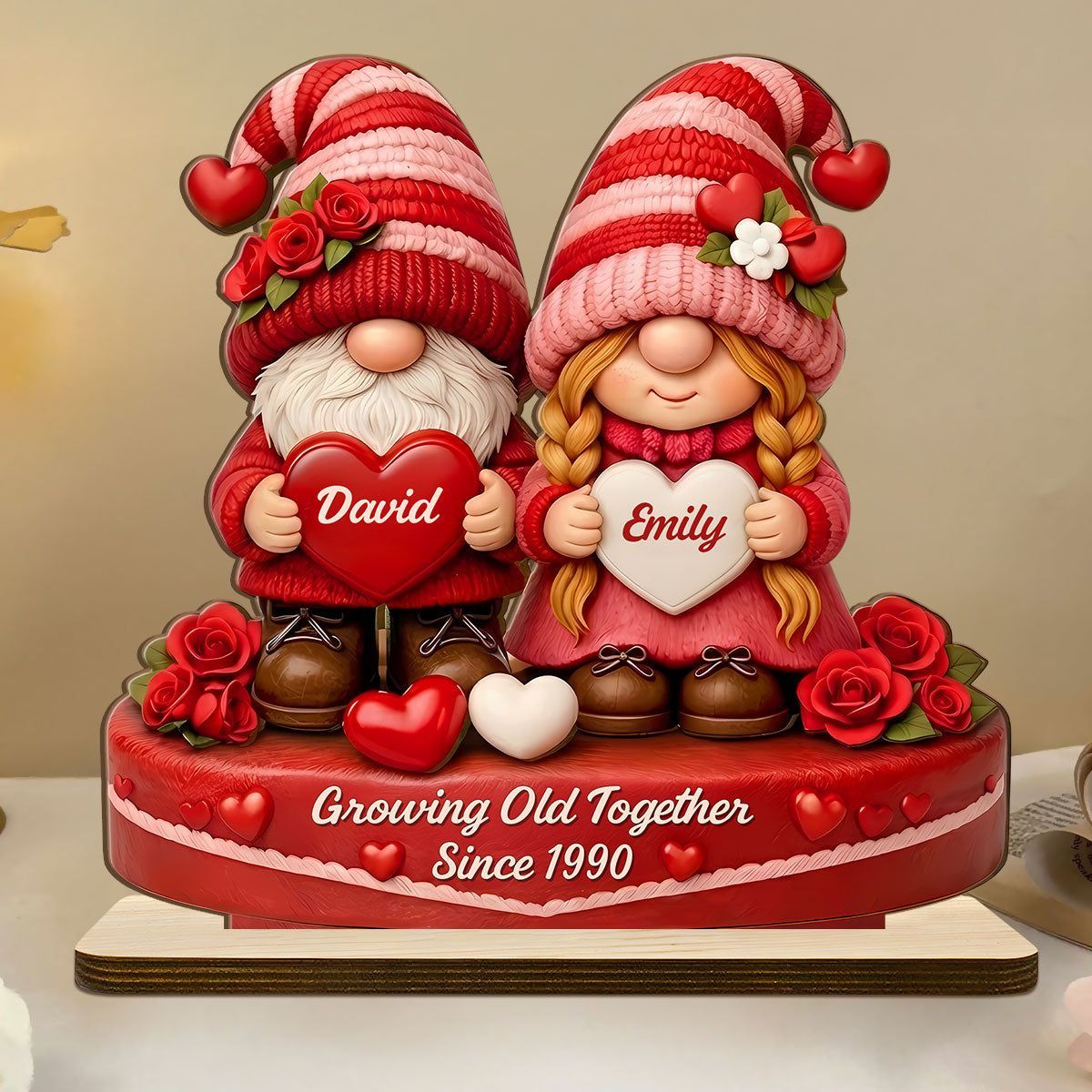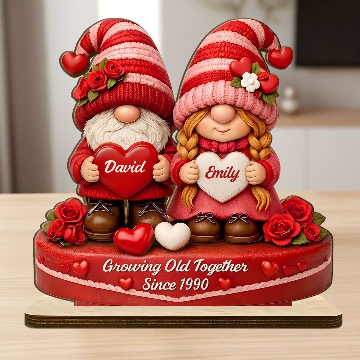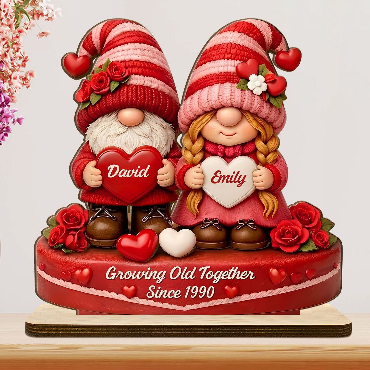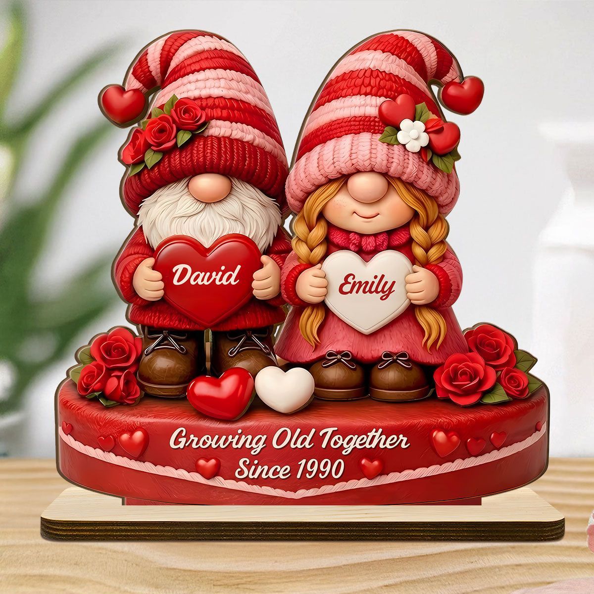 Romantisches Zwerg paar-personal isierte Holz plakette mit flacher Basis