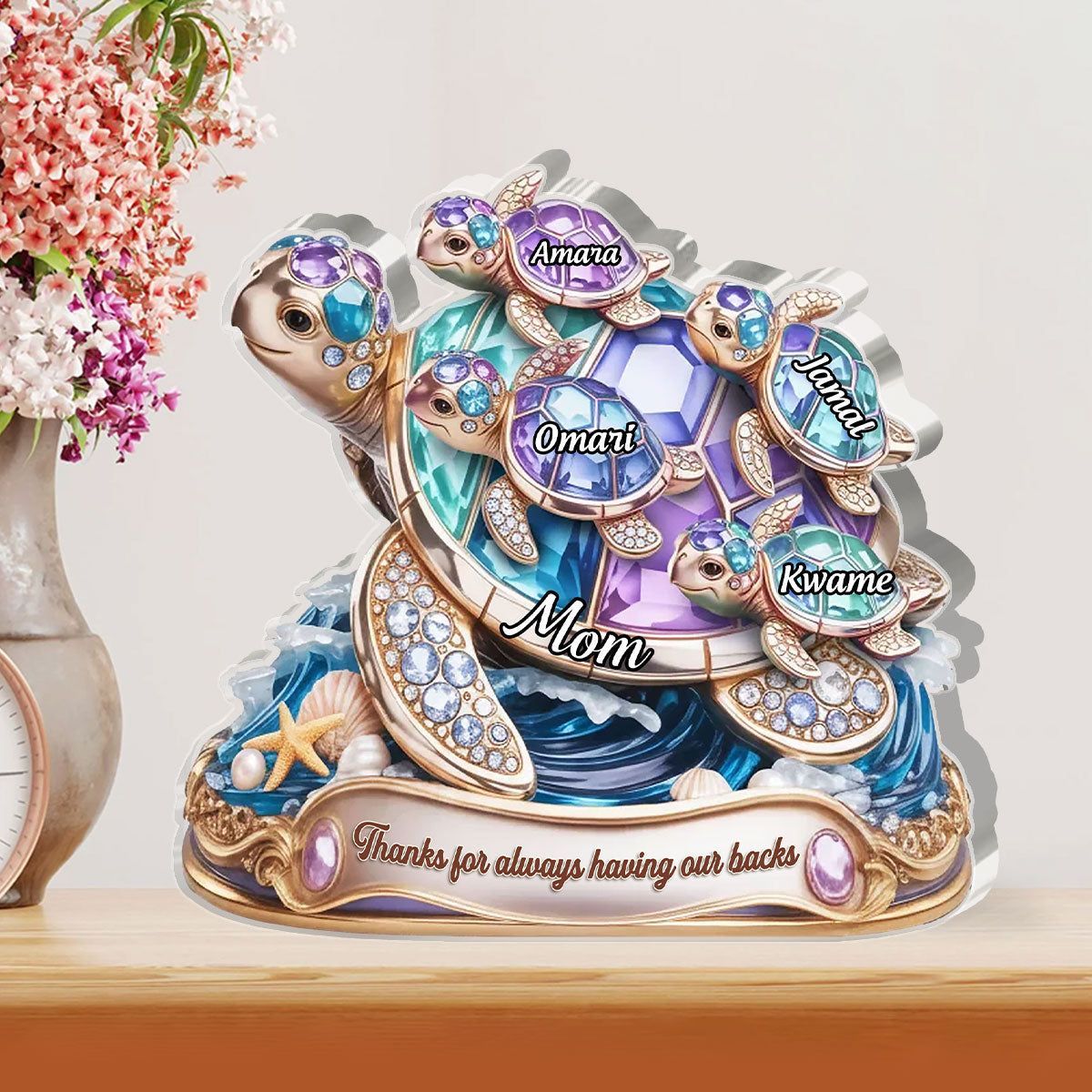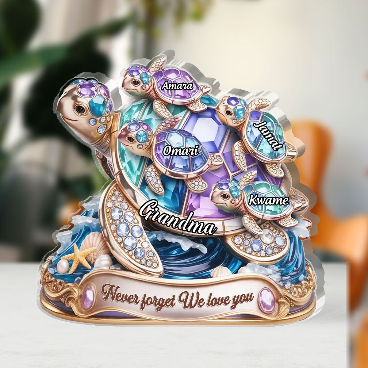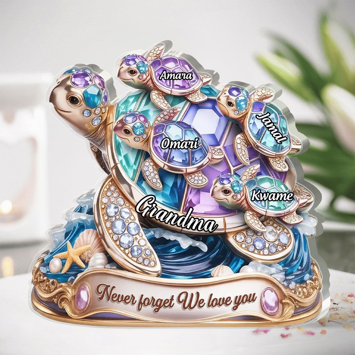 Personal isiert Niemals vergessen Wir lieben dich Acryl-Plakette | Custom Name Oma & Enkelkinder Schildkröte Familie Andenken