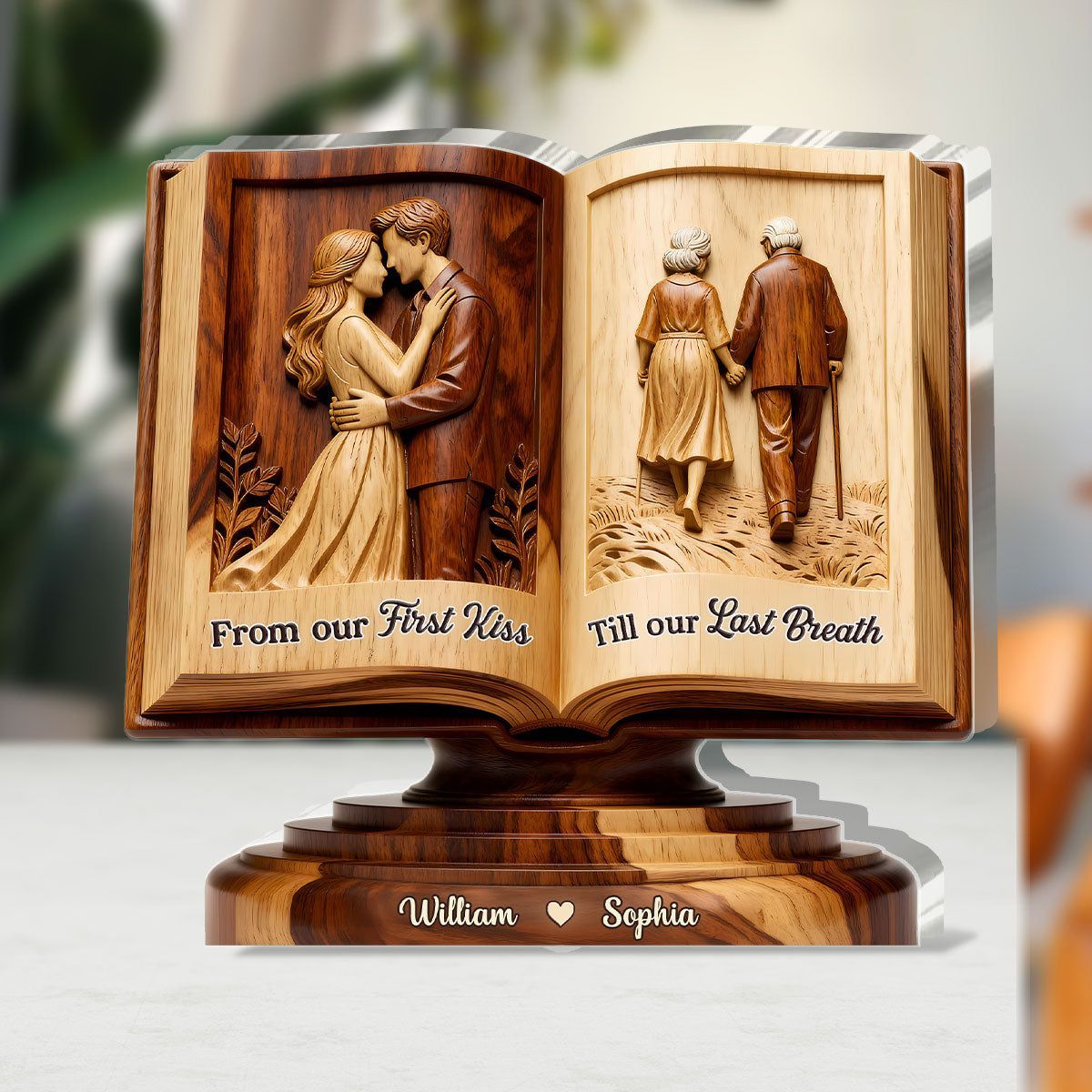 Personal isiert von unserem ersten Kuss bis zu unserem letzten Atemzug Liebes geschichte Buch Acryl Plakette | Custom Name Paar Andenken