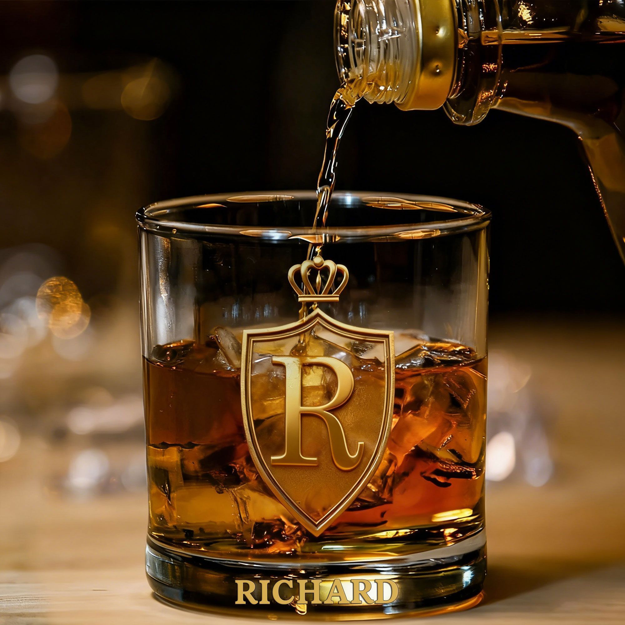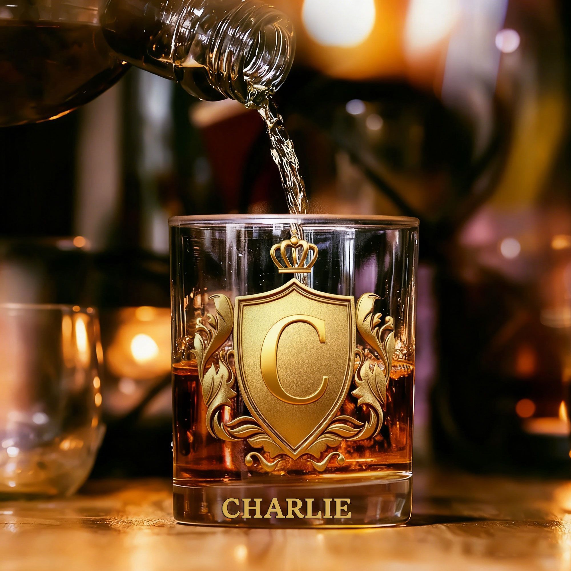 Personal isiertes goldenes 3D-Abzeichen Initial Name Whiskey Glas altmodisches Geburtstags geschenk für Mann Barkeeper Whisky Enthusiast