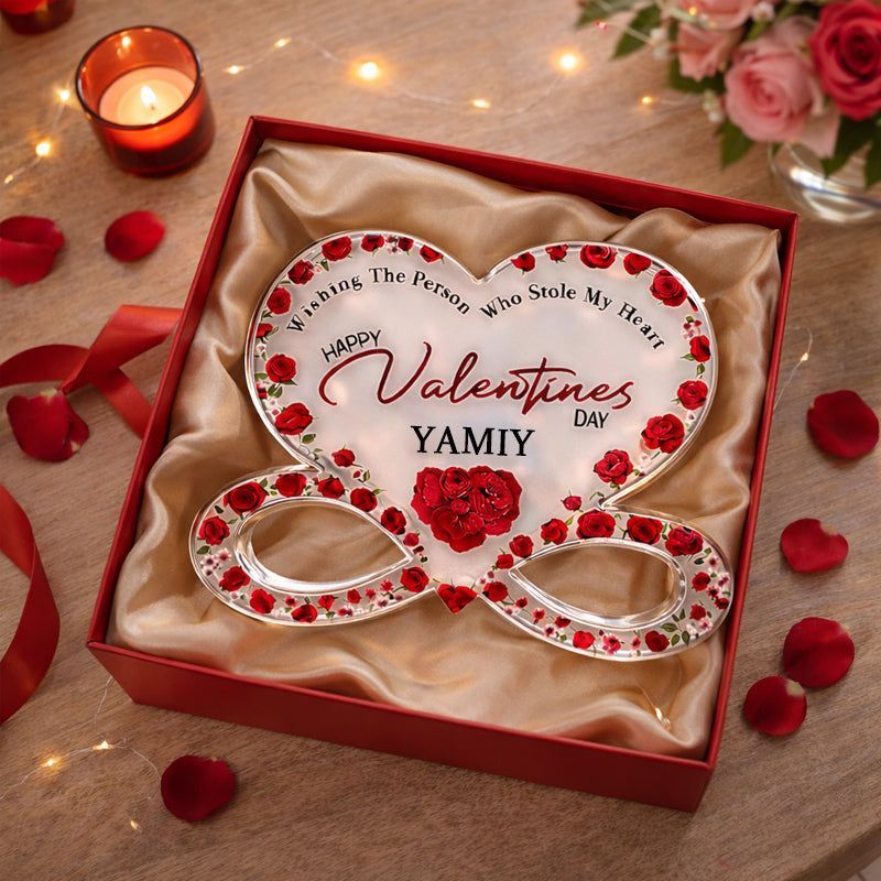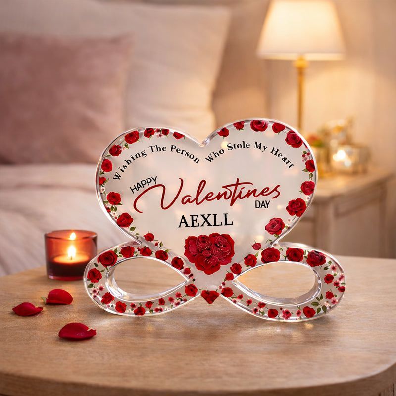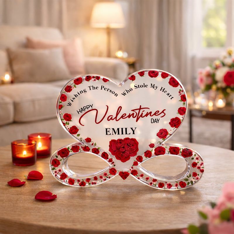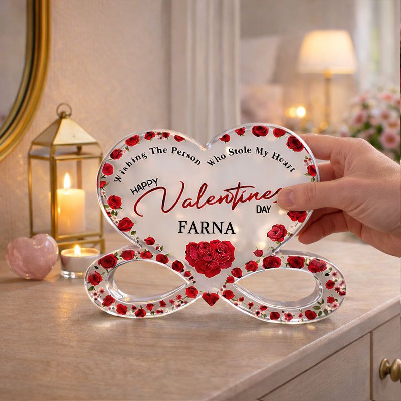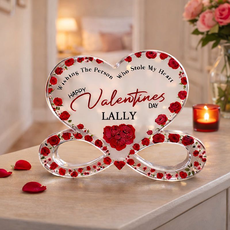 Personal isierte rote Blumen-Herz-Plakette-Valentinstag-Geschenk für ihr individuelles Acryl-Andenken