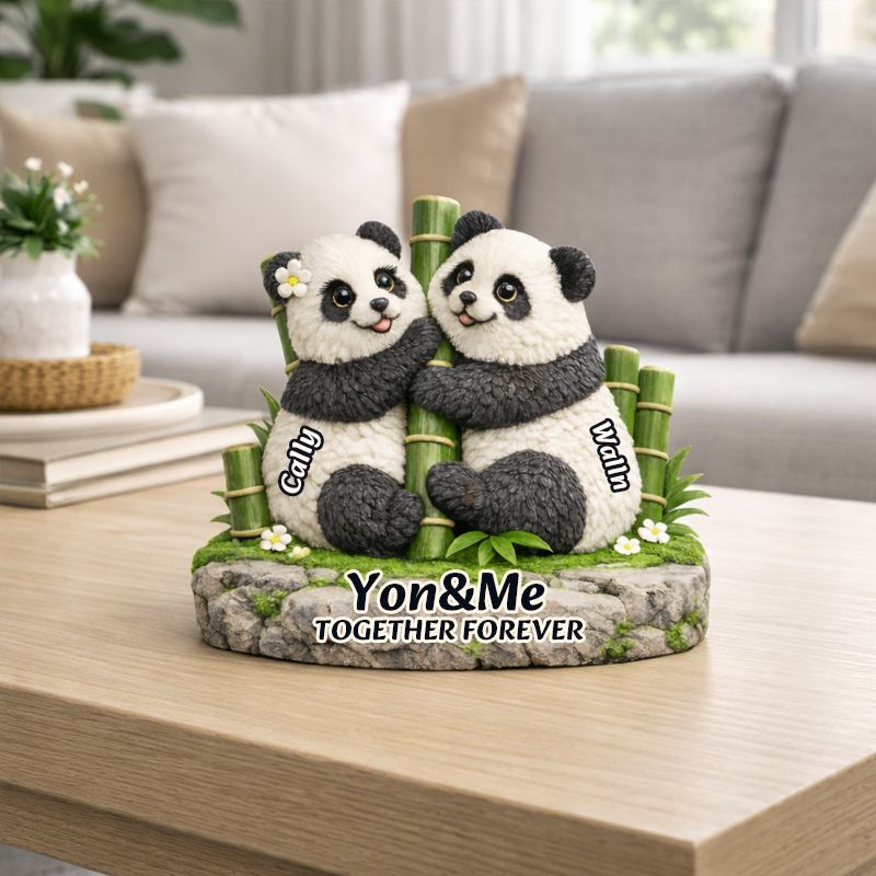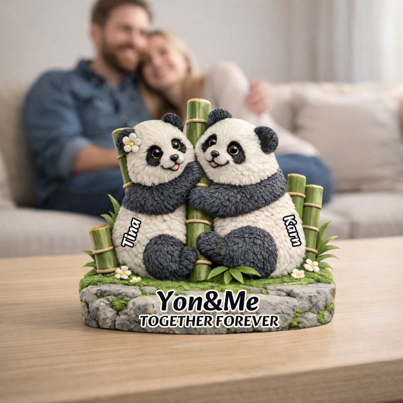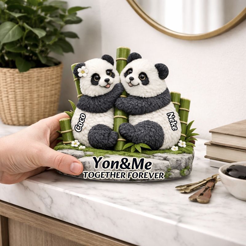 Personal isierte Panda-Paar Acryl-Plakette | Du & Ich zusammen für immer Bambus Liebe Andenken