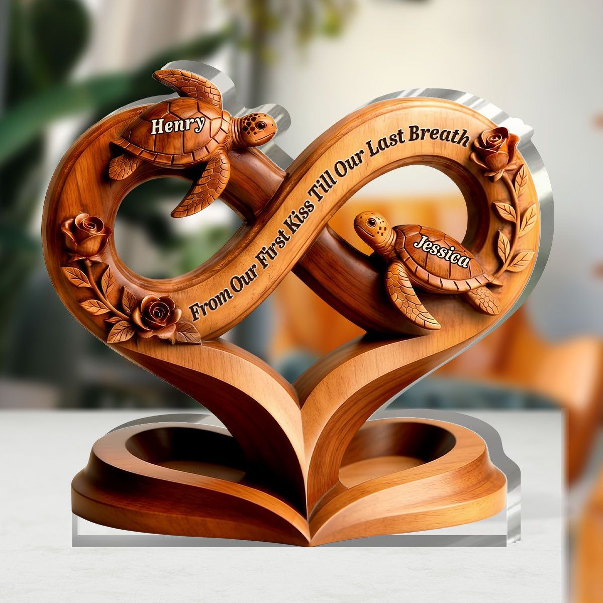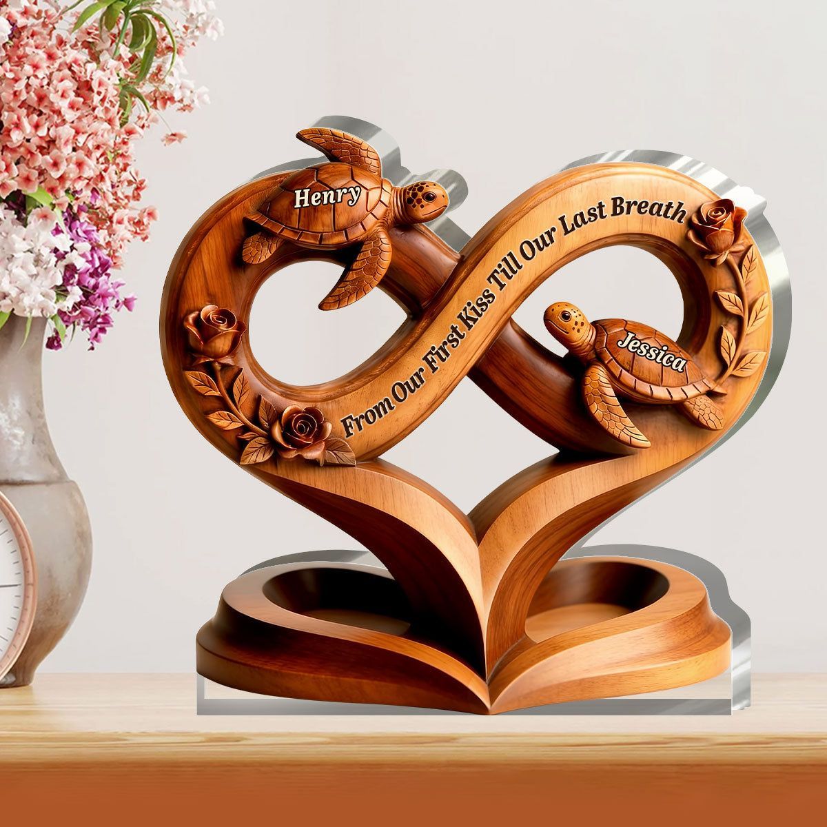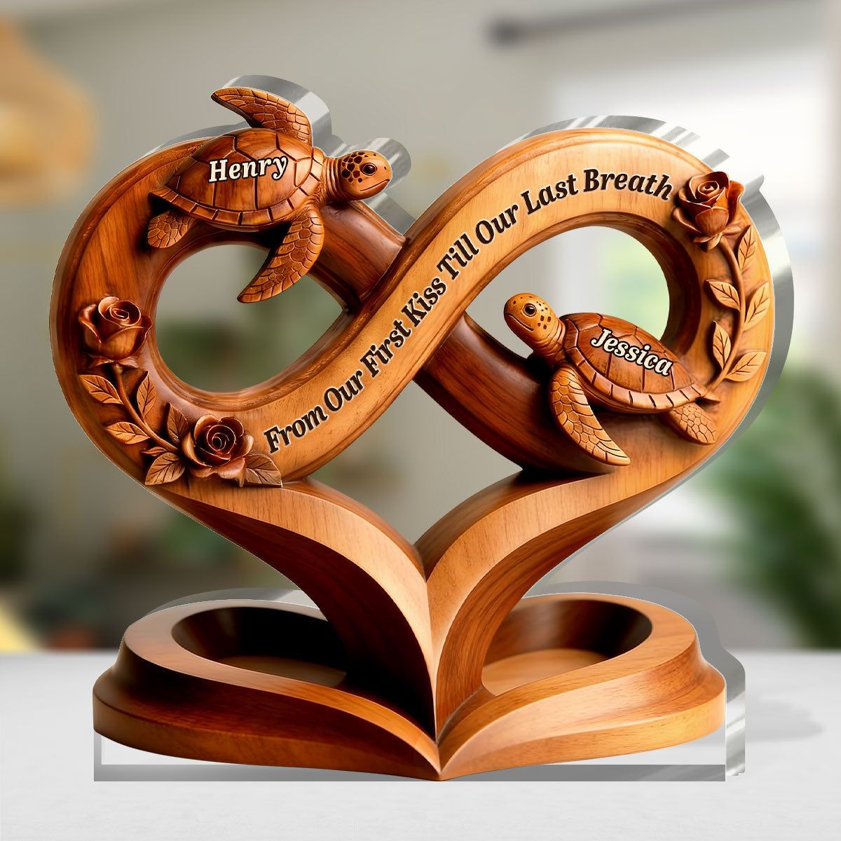 Personal isierte Meerschildkröten-Paar Acryl-Plakette | Von unserem ersten Kuss bis zu unserem letzten Atemzug Unendlichkeit Herz Liebe Andenken